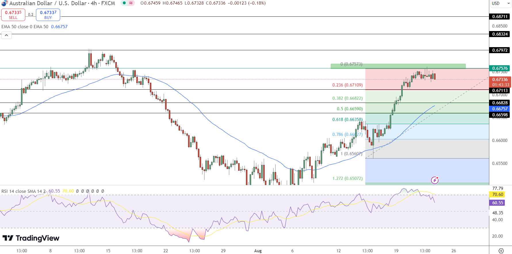Currently, the AUD/USD pair trades at $0.67517. The pivot point at $0.6772 will be key in determining whether the pair can continue its upward momentum.