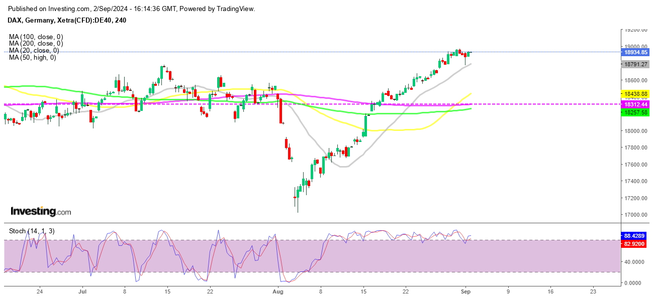 Dax Index Chart H4 – The 20 SMA Holding as Support