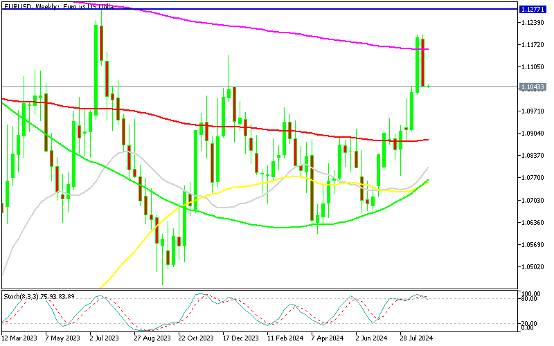 EURUSD dropped 150 pips in three days last week, reversing the strong buying momentum it had shown earlier in August. The pair is now approaching the 1.10 level as dollar buyers re-enter the market. The Euro was pressured by lower-than-expected Eurozone CPI inflation data, which raised concerns about the region’s economic outlook.