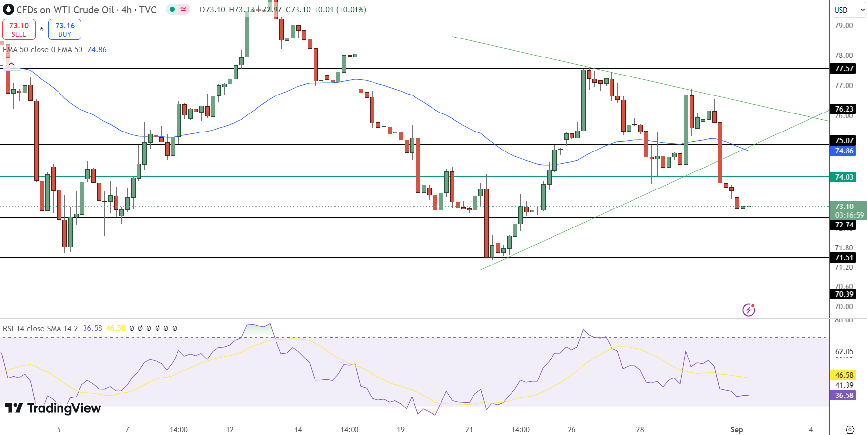Moreover, WTI Crude Oil is trading below its 50-day Exponential Moving Average (EMA) of $74.86, further reinforcing the bearish sentiment. For traders, monitoring the $74.03 pivot point will be crucial.