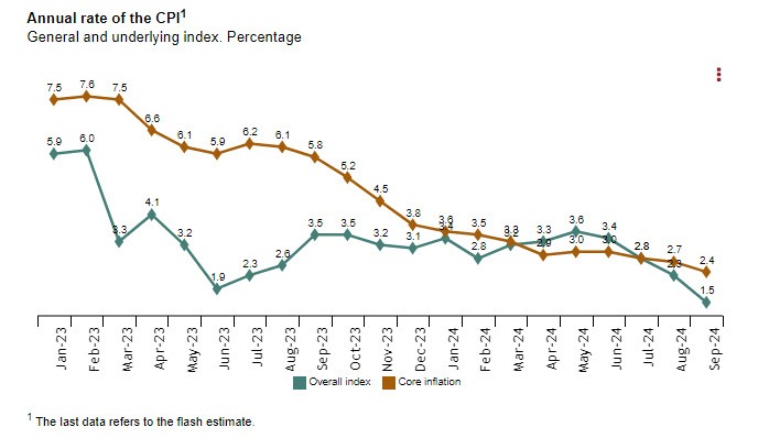 The lower-than-expected inflation figures for September suggest that price pressures in Spain are easing more rapidly than anticipated.