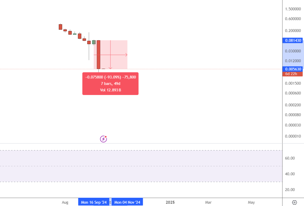 Such a swift decline has led to a loss of almost all early gains, with the token now trading at a fraction of its initial value.