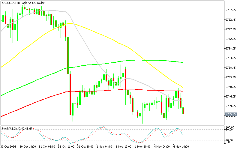 Gold buyers were testing the 100 SMA today, but it turned into resistance, rejecting XAU, so we decided to open a Gold sell signal.