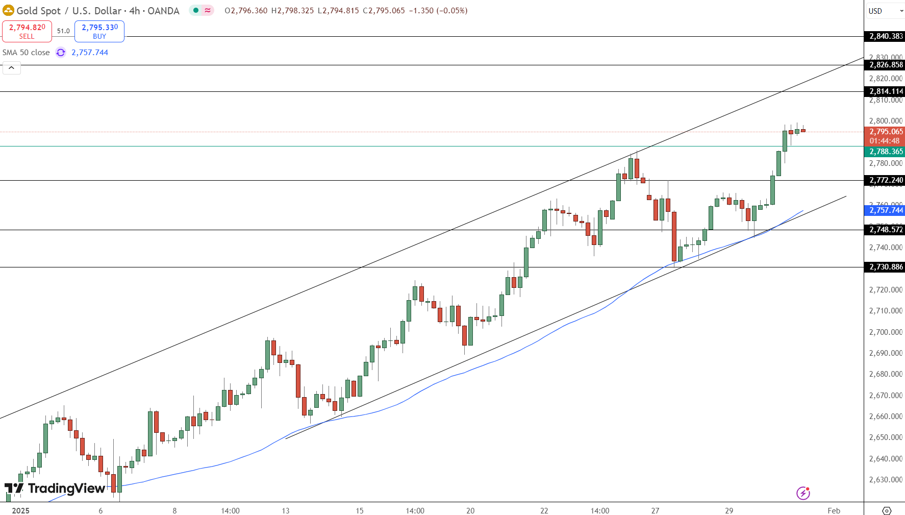 Support Levels: $2,772, $2,757 (50-day EMA), $2,748