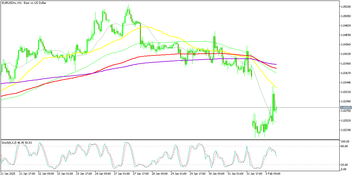 EUR/USD reversed lower in late October above 1.11 and it turned quite bearish in Q4 of 2024, falling below 1.02 by early January. However, we saw a retrace higher above 1.05 in the third week of last month, which sent the price above 1.05. However, buyers couldn’t keep the price up there and last week this forex pair reversed lower, slipping below 1.04 where it closed the week. Last night, we saw a major bearish gap, which sent the price 1.5 cents lower, to 1.02 lows after the weekend announcement of US tariffs on Canada, Mexico and China.