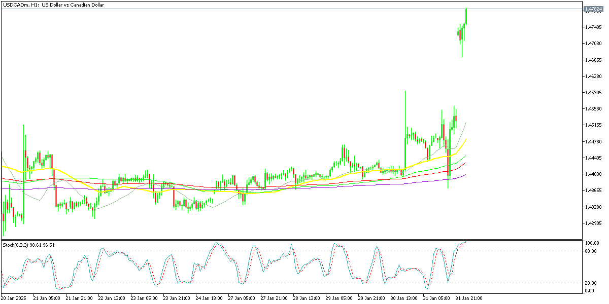 Last Thursday, as newly elected U.S. President Donald Trump advanced plans for a 25% tariff on imports from Canada and Mexico, the USD/CAD pair surged to a five-year high. Over the weekend, Trump officially signed the trade tariffs into law, triggering a strong market reaction. By Monday night, USD/CAD had opened 200 pips higher and reached a record high of 1.4750.