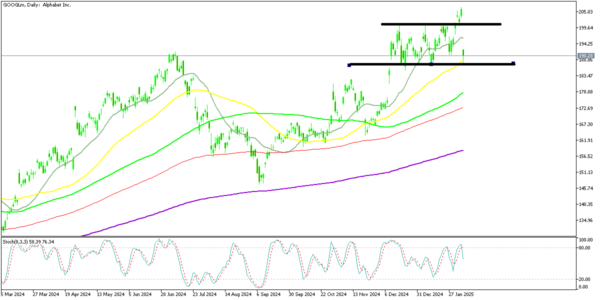The Google stock has been trading in a range since early December, with support below $190 and resistance around $200 after some decent gains since August. This week though, buyers showed resilience, pushing the stock price above the resistance, however during the night, Google shares plunged as sellers dumped the stock in the after-hours trading, following the release of financial tables and the miss in expectations.
