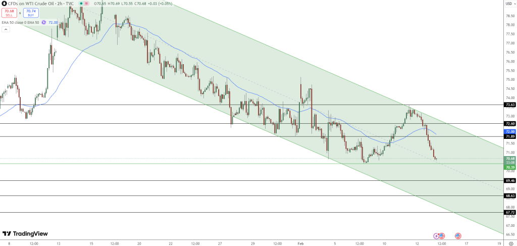 A break below $70.39 could reinforce bearish sentiment, targeting $69.46. However, a move above $72.00 could challenge the downtrend, potentially driving prices toward $73.63. Traders should monitor volume trends and geopolitical updates, as both factors could trigger volatility in oil markets.
