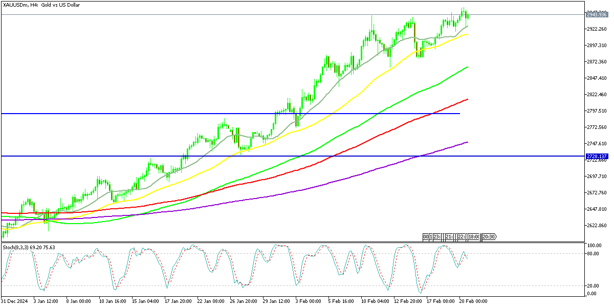 Gold prices continue to climb, setting new records as financial market uncertainties drive strong demand for the safe-haven asset. Earlier in February, gold hit a high of $1,942 before pulling back, but key moving averages provided support, preventing a deeper decline. The ability of gold to maintain higher lows suggests that buyers remain in control, reinforcing bullish sentiment in the market.