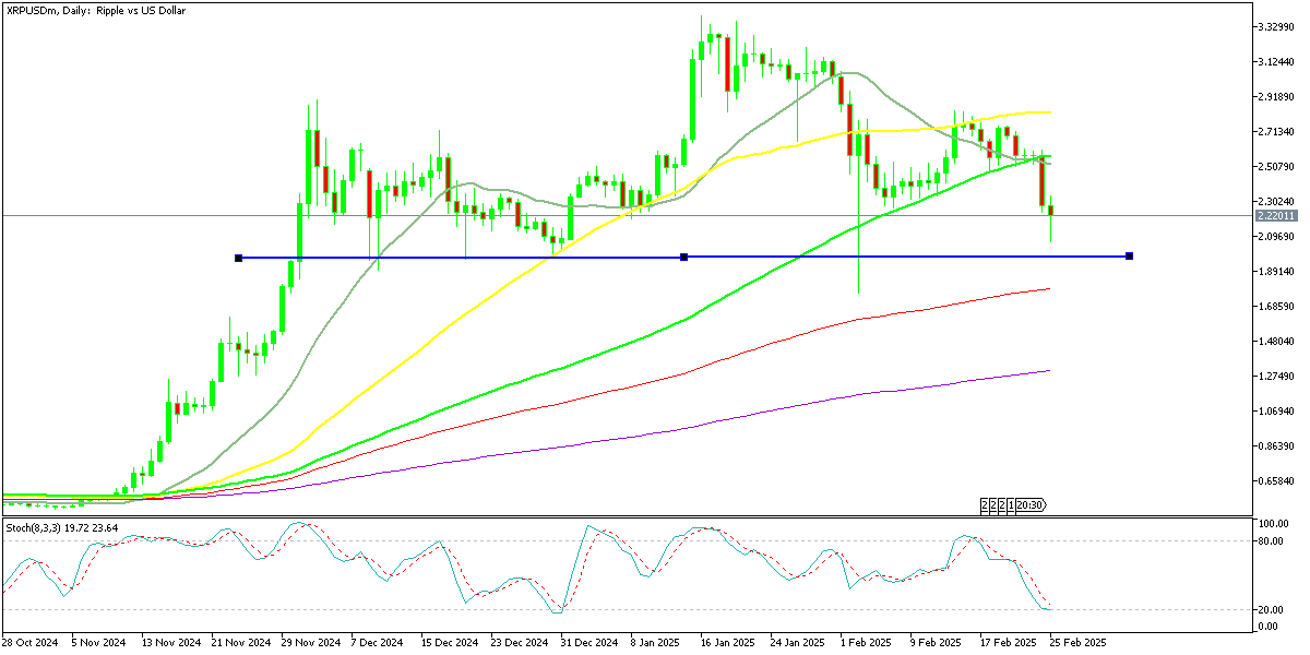 After a remarkable rally in late 2024 and early January 2025, Bitcoin (BTC) and Ripple (XRP) reached new all-time highs. However, February has brought signs of exhaustion to the crypto market. Bitcoin has been unable to break past the crucial $100,000 resistance level this month and has now fallen below the $90,000 support zone. Similarly, Ripple has struggled to surpass the $3 mark and remains below the 50-day Simple Moving Average (SMA) (yellow), signaling strong resistance.
