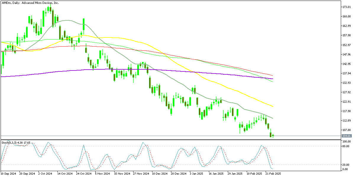 Despite occasional recovery attempts, AMD has struggled to regain upward momentum. On the weekly chart, sellers are now testing the crucial 200 SMA, which hovers just above the $100 mark, a level that could act as a key support zone.
