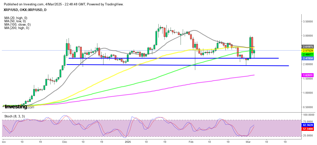 XRP jumped back above $2.50, but for bullish momentum to continue, buyers must break through the $3 resistance level. Since early February, XRP has been stuck in a $1 range between $2 and $3, making $3 the key breakout point for further gains. Conversely, a break below $2 would shift control to sellers, potentially triggering more downside momentum.