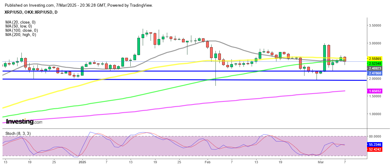 Despite the drop, Friday’s price action suggested a possible reversal. AMZN fell to $192.54, but buyers stepped in late in the session, pushing the stock back up to close the week at $200. This formed a doji candlestick, a potential bullish reversal signal, while the 100-day SMA (red) held as support.