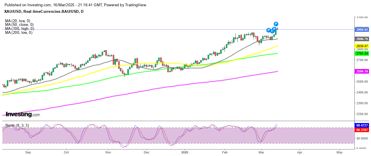 The delay in tariff implementations weakened the US dollar, allowing the euro to strengthen and push EUR/USD higher. Over the past week, the euro outperformed all major currencies, climbing four cents to a four-month high above 1.08. Notably, for the first time since November, EUR/USD broke above all key daily moving averages, signaling a potential shift in market sentiment.