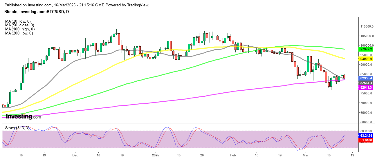 Meanwhile, uncertainty surrounding global trade regulations continued to fuel volatility in the cryptocurrency market. Bitcoin initially soared to $95,000 after Donald Trump announced plans to include Bitcoin, Ethereum, Solana, Ripple (XRP), and Cardano (ADA) in a proposed US cryptocurrency reserve. However, traders remained cautious while awaiting further policy details. Selling pressure quickly returned, driving Bitcoin below its 200-day simple moving average (SMA). By Tuesday, Bitcoin had fallen to $80,000, breaking below its February low of $78,500 before staging a recovery yesterday.
