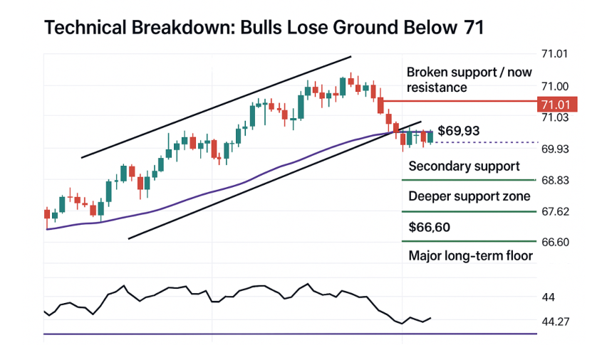 For now, traders are watching the $68.83–$67.62 area for potential support. A sustained move below these levels could signal a deeper retracement—possibly toward the $66.60 floor.
