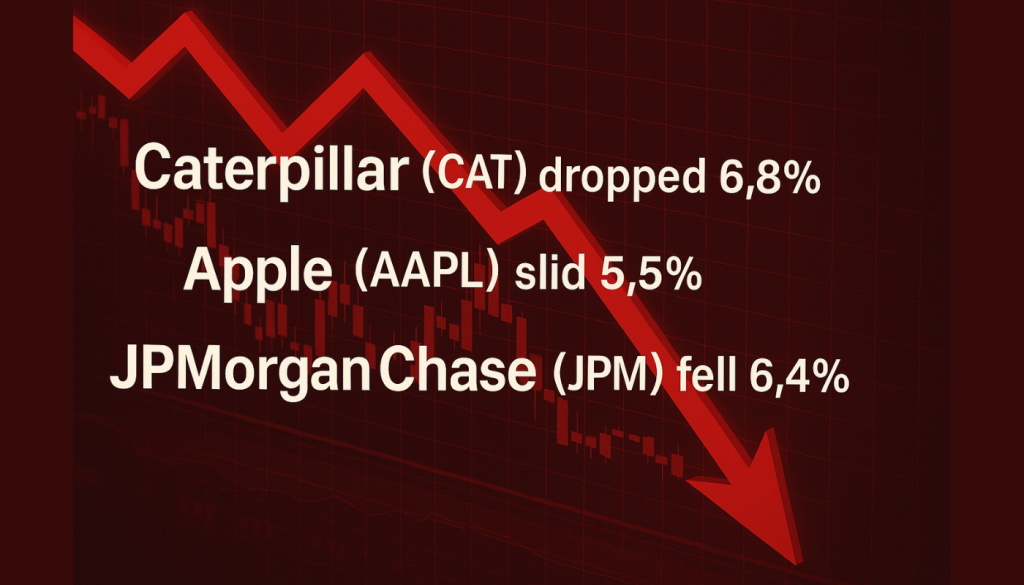 Caterpillar, Apple, and JPMorgan stocks drop sharply amid renewed U.S.-China tariffs and rising fears of an economic slowdown.