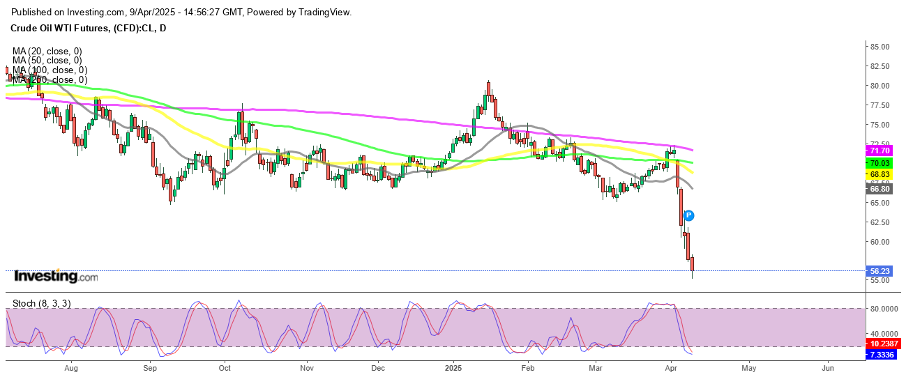 Rout in Oil Prices Intensifies: EIA Data, Tariffs Push WTI Below $57