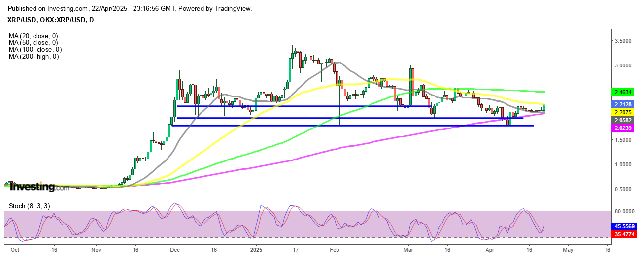 XRP’s resilience has not gone unnoticed. As investor confidence slowly returns to the crypto sector, XRP led a modest recovery across the board, successfully reclaiming the $2.20 mark by midweek and attracting fresh attention from market participants.