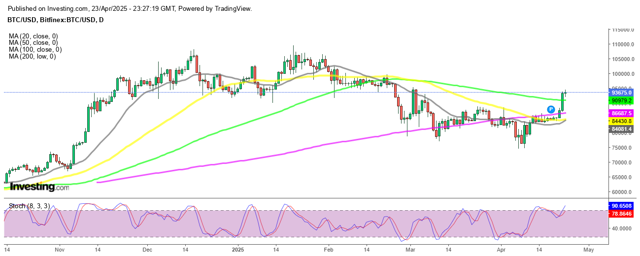 Bitcoin mirrored broader market fluctuations, briefly dipping below $75,000 and nearing its 50-week moving average before rebounding to $93,000. The rally was supported by renewed optimism following pro-growth remarks from Trump, which spilled over into the crypto space.