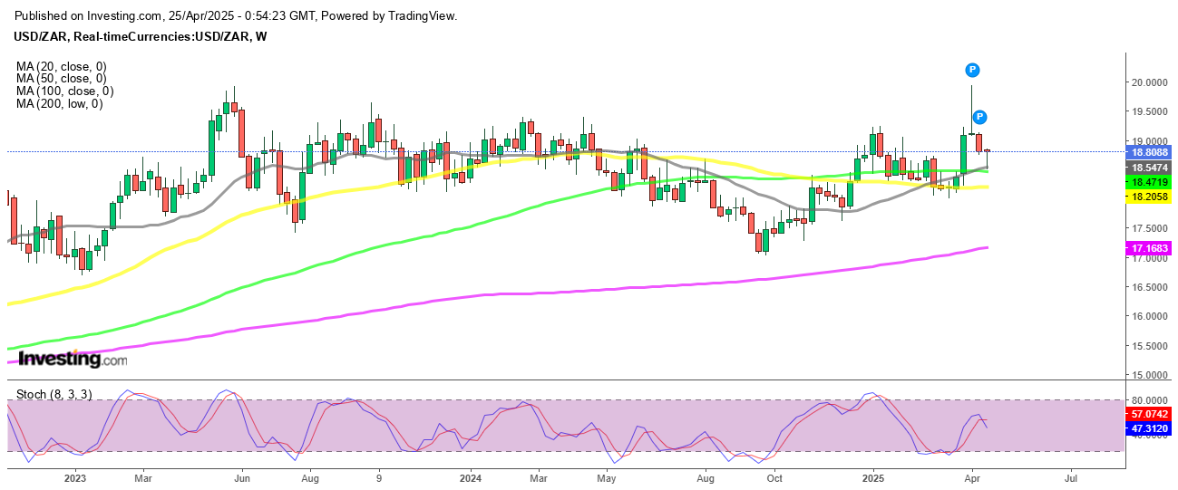 Even as the US dollar broadly weakens this year, the USD/ZAR pair has been pushing steadily higher, nearly reaching the critical 20.00 threshold again in early April. This marks the second such attempt since June 2023, when bulls first tested this long-standing resistance. While that breakout ultimately failed, the swift recovery from recent pullbacks suggests that upward momentum is building once again.