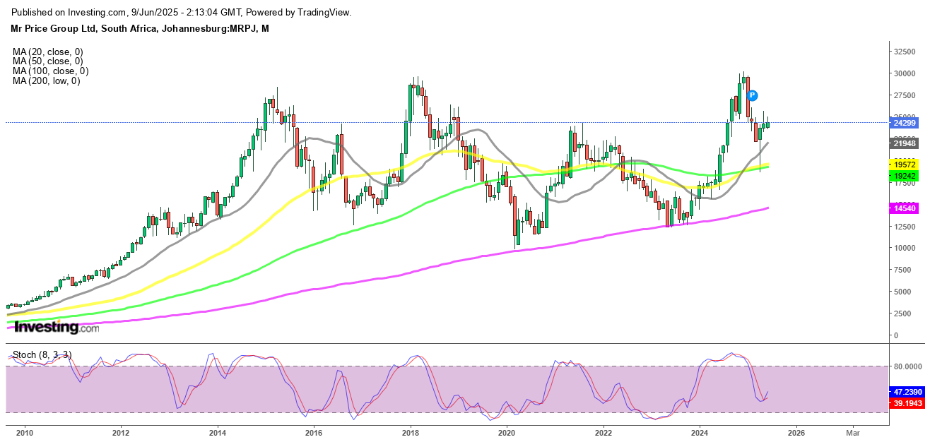 This hesitation may also be linked to broader market fatigue. Mr Price’s stock has experienced a choppy long-term trend since 2015. While occasional new highs have been reached, these peaks have often been followed by significant pullbacks.