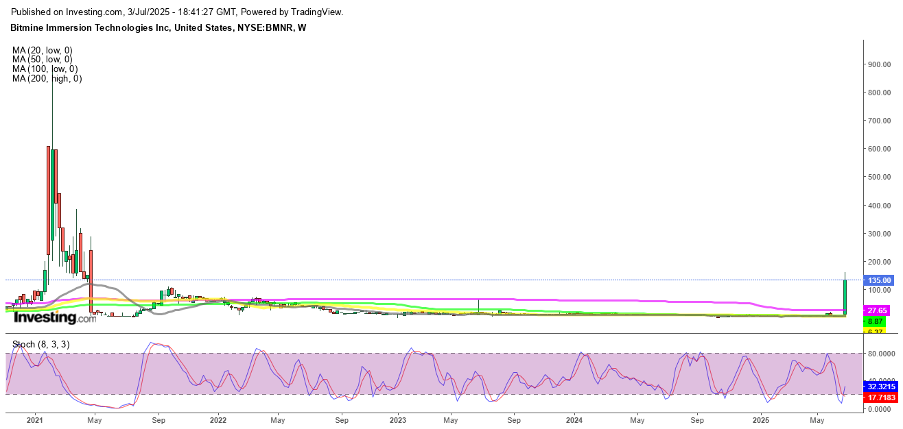 - BitMine Immersion Technologies' stock surged over 3,000% following its announcement of an Ethereum-focused treasury strategy.