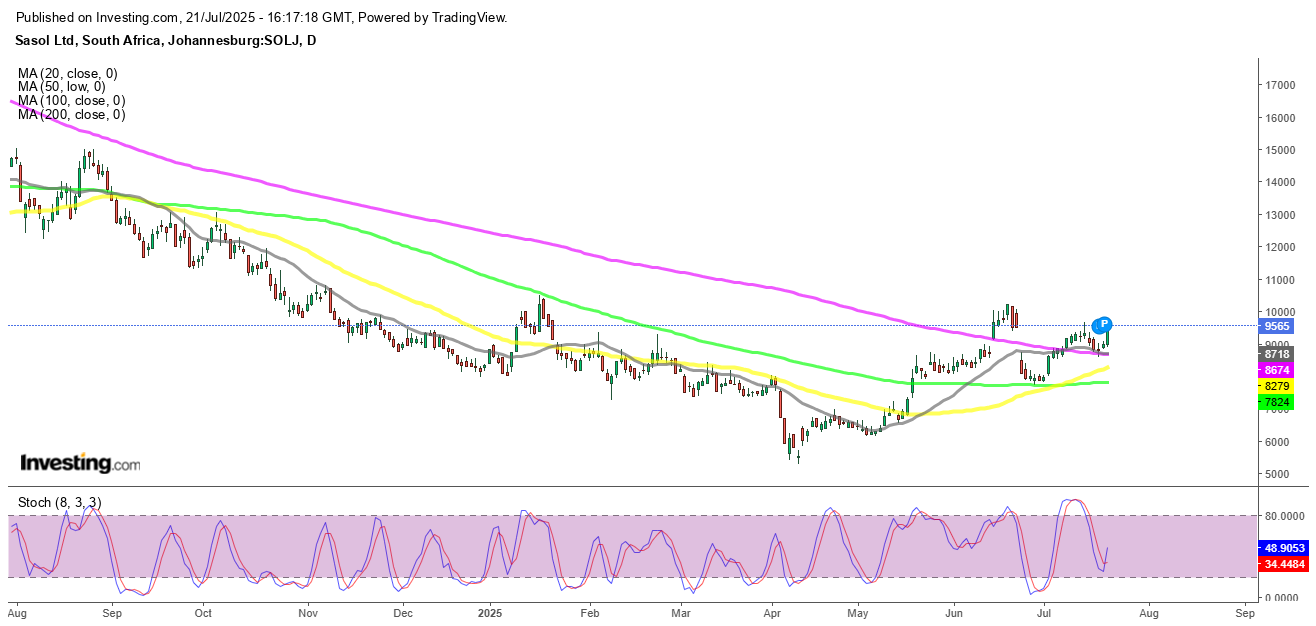 - Technically, Sasol has regained support above the 200-day simple moving average, indicating improved market sentiment.