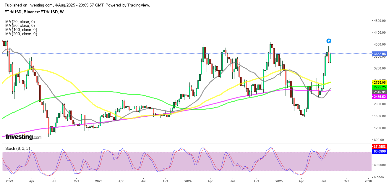 Ethereum continued to outshine Bitcoin, rallying 20% since April and breaking its 100-week moving average. The move has been fueled by optimism over the upcoming “Pectra” upgrade, which promises to enhance scalability and transaction efficiency, drawing renewed institutional inflows. Ethereum is now aiming for the $4,000 level, reinforcing its role as a favored high-conviction asset in times of macro uncertainty.