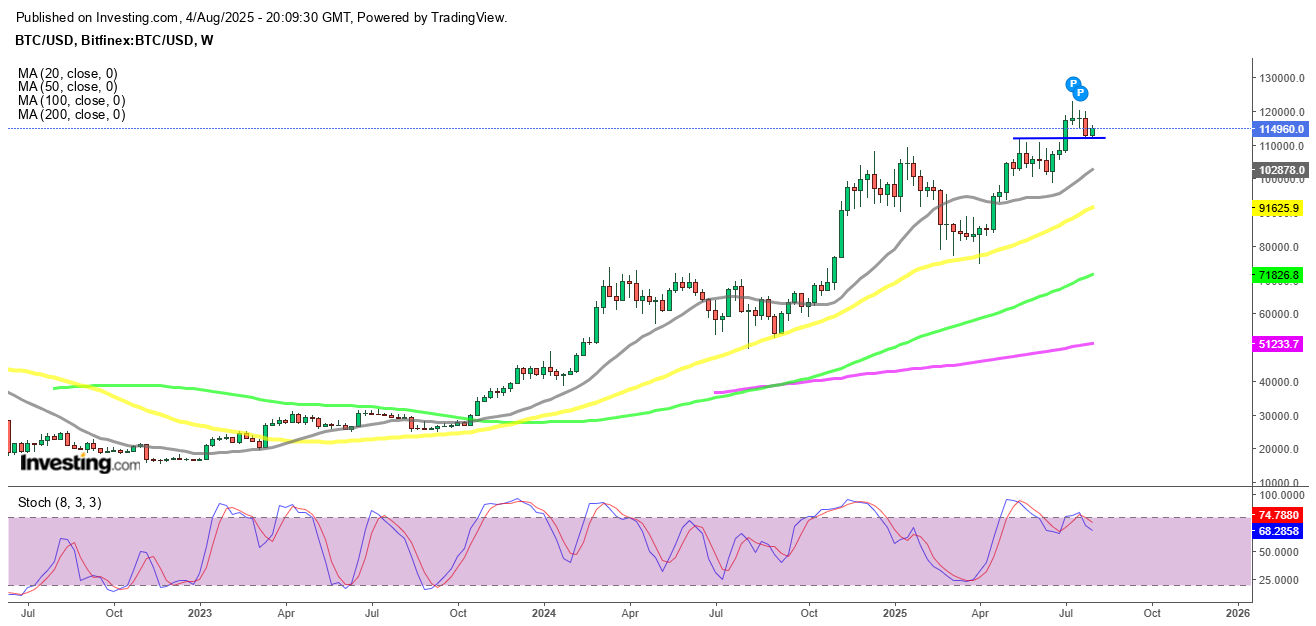 Cryptocurrencies remained a bright spot in an otherwise unsettled market. Bitcoin briefly fell below $112,000 last week before rebounding strongly off the previous high zone, which seems to have turned into support now.