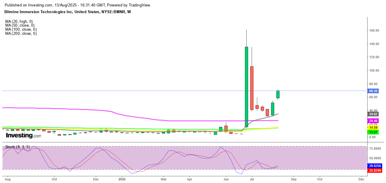- BitMine Immersion Technologies has seen a remarkable recovery, with shares rising over 130% in just over a week due to Ethereum's rally.