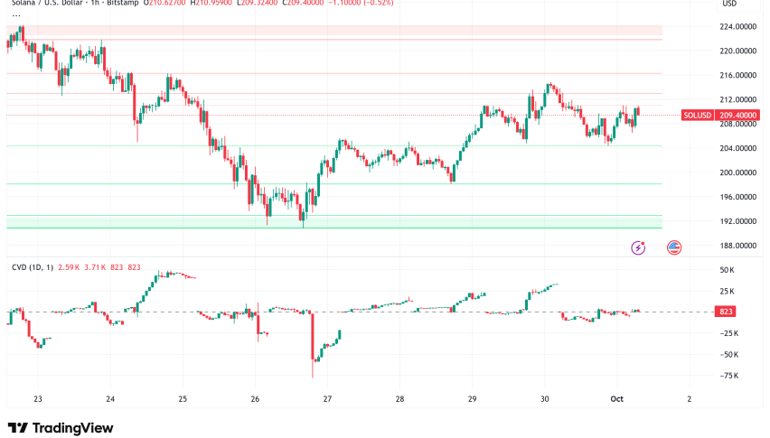 On Tuesday, Solana SOL/USD showed amazing strength by bouncing back from a flash drop to $204.17 and staying stable around $210, even while the rest of the market was shaky because of fears of a U.S. government shutdown. The fast recovery, which was helped by institutional buying pressure, shows that traders are becoming more confident in SOL’s fundamentals as they prepare for the Securities and Exchange Commission’s October 10 ETF decision deadline.