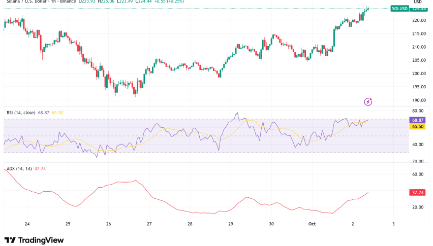 Solana SOL/USD is trading above $222, which is a 5.7% rise in the last 24 hours. This is a key time for institutional investors to make judgments ahead of big regulatory decisions. The recent price movements show a battle between bullish ETF speculation and technical ambiguity, with October 10 being a key date for the cryptocurrency’s future.