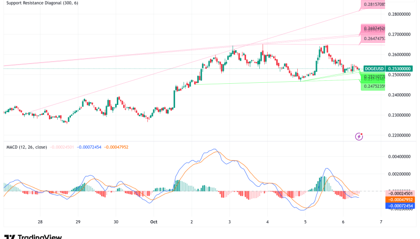 At the time of writing, Dogecoin DOGE/USD is trading at $0.2540, down 3.8% in the last 24 hours. However, it is still holding important support levels, which makes analysts more and more optimistic about the meme cryptocurrency’s short-term future. Even though prices have dropped from weekend highs of $0.26, several technical patterns are coming together to suggest that prices could rise approaching the important $0.30 level.