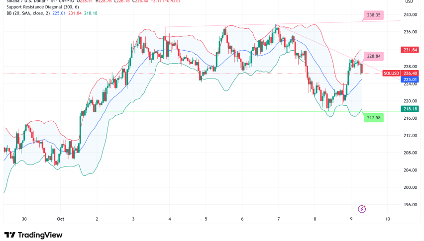 From a technical point of view, SOL’s recent drop to $218 and then rise to $229 suggest that the token is establishing support in the $218–$220 region. The bulls need to break through the clear resistance level that was set when the price tried to break above $250 on September 18 and failed.