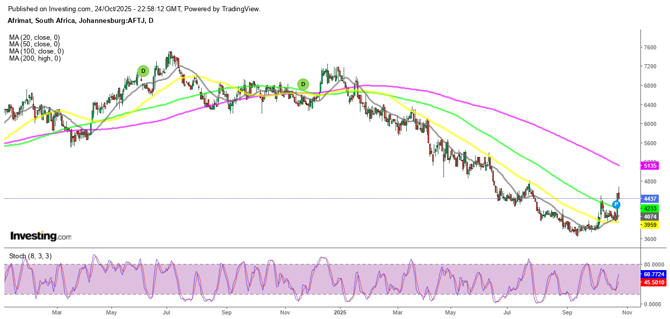 - Afrimat's stock is rebounding after a significant decline, with an 11% surge following positive earnings guidance.