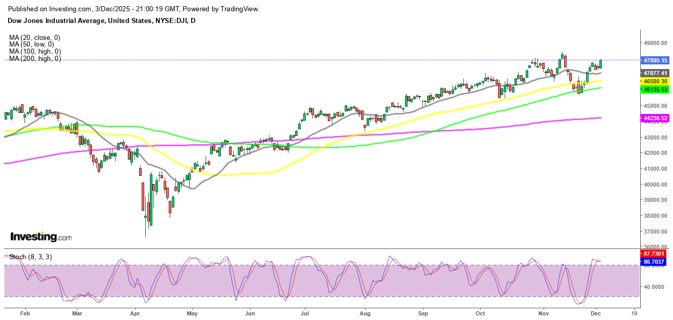 Technically, all three major indices have reclaimed their short-term moving averages, a key bullish development that gives buyers a solid support zone. As long as prices remain above these levels, traders are likely to continue targeting the record marks set at the end of October.