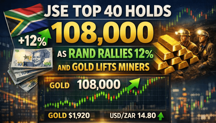 JSE Top 40 Holds 108,000 as Rand Rallies 12% and Gold Lifts Miners
