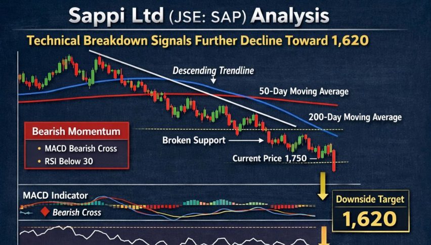 Sappi Ltd (JSE: SAP) Analysis: Technical Breakdown Signals Further Decline Toward 1,620