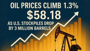 Oil Prices Climb 1.3% to $58.18 as U.S. Stockpiles Drop by 3 Million Barrels
