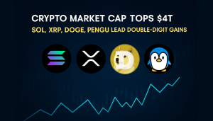 Crypto Market Cap Tops $4T as SOL, XRP, DOGE, PENGU Lead Double-Digit Gains