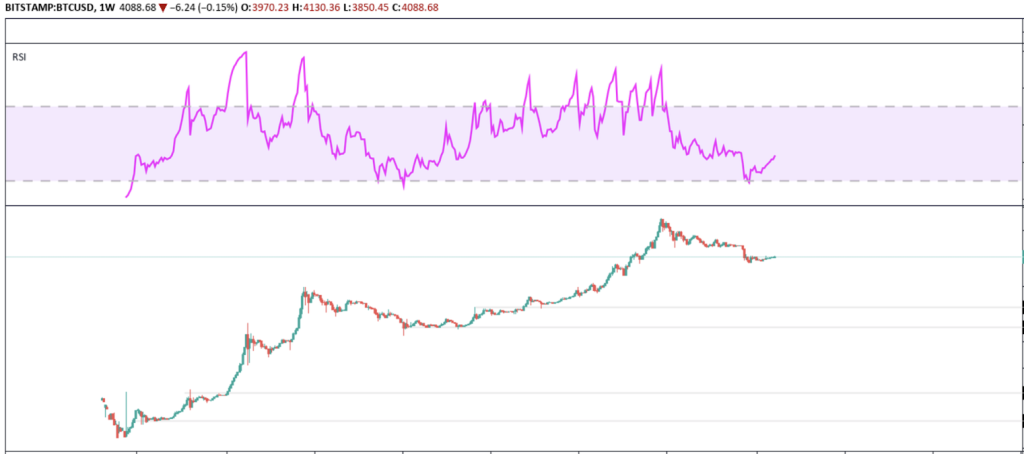 In the example above, you would have entered a long position on Bitcoin somewhere around $4.50 and would have sold your position when the RSI reached overbought regions, which happened around $14.50. You then would have waited until the RSI reached oversold regions to buy Bitcoin again, which was around $220. As the RSI reached overbought regions again, you would have sold your position at around $500.